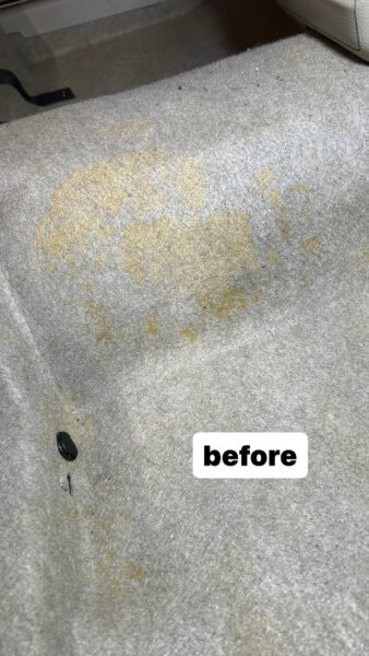 そんな難しい汚れも状態や種類によってケミカルを使い分け、こぼしてしまったところにケミカルを浸透させてスチーム洗浄します。