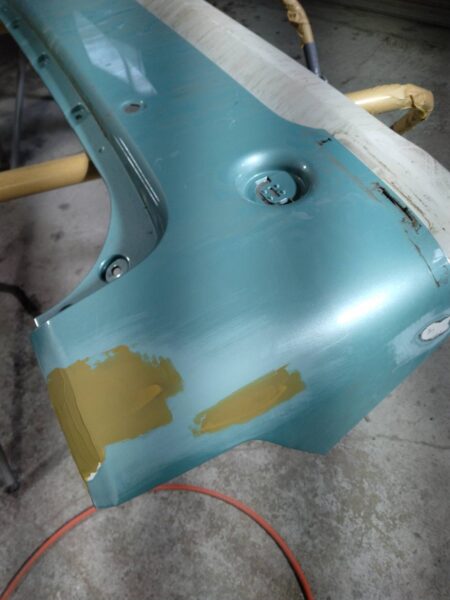カーポートの柱にぶつけてしまったとのことでの入庫です。
