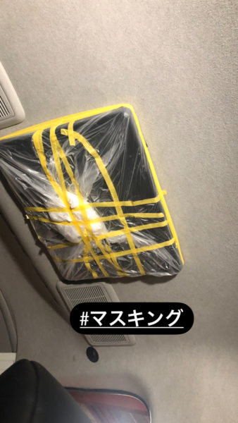 車内は高温スチームを使用するため機器系は全てマスキングします。