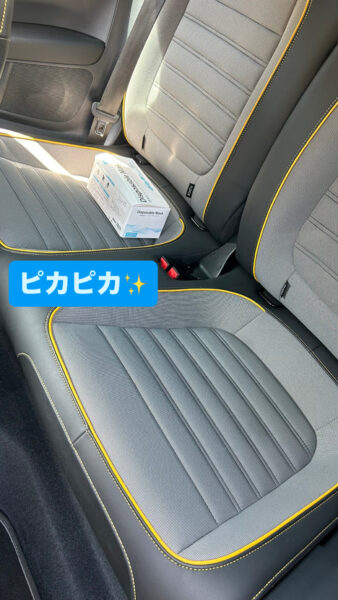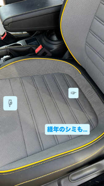 車内も可愛いビートルですがシートにも汚れがついていたため、シート洗浄も一緒に行います!