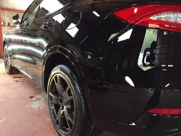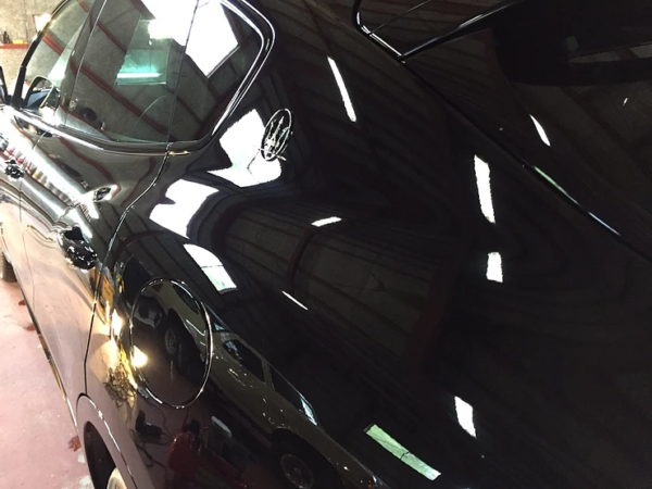 今回はマセラティレヴァンテのソリッドブラックにセラミックキーパー9Hを2レイヤーで施工致しました。イタリア車全般に言えますが、マセラティは塗装面が柔らかく、また車両個々で塗装の個体差があるため、パネルごとで膜厚がかなり違います。コーティングをしないままでは傷が付きやすい箇所があるため、今回は全体を9Hの硬度を誇るセラミックキーパーを2レイヤーで施工しました。