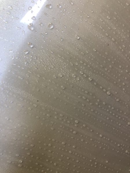 原因は長年かけたポリマー性の皮膜がどんどん重なっていきその表面が太陽光や紫外線にさらされくすみはじめたのが原因でした。