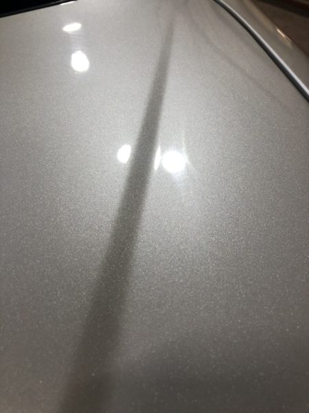 くすんだ原因をガソリンスタンドに相談したところ、古い車なのでクリア層がなくなったのではとのことでしたが、確認するとクリア層のダメージではなく、皮膜の表面上にくすみがかかっているような感じ、、、