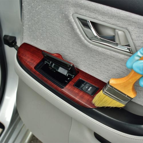 お車の室内清掃の仕上げに抗菌・除菌を施します。