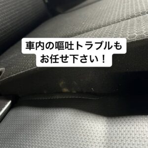こんにちは! リムラボです! 今回は車内で嘔吐してしまったとのことでご依頼頂きました。 お客様自身で重曹等で初期処理をしていただいてのご入庫でした…